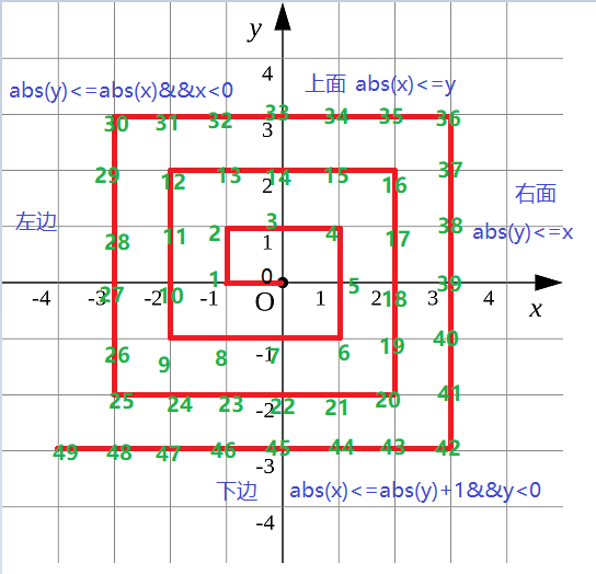 如下图所示的螺旋折线经过平面上所有整点恰好一次。
